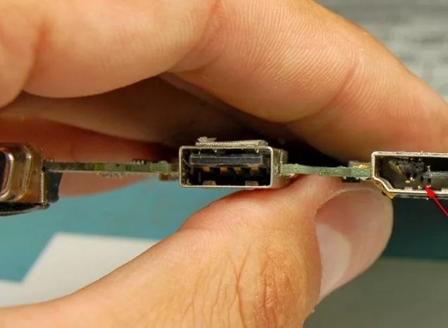 - Попадание в порт грязи, пыли или мелких предметов, что влечет за собой ухудшение контакта.
